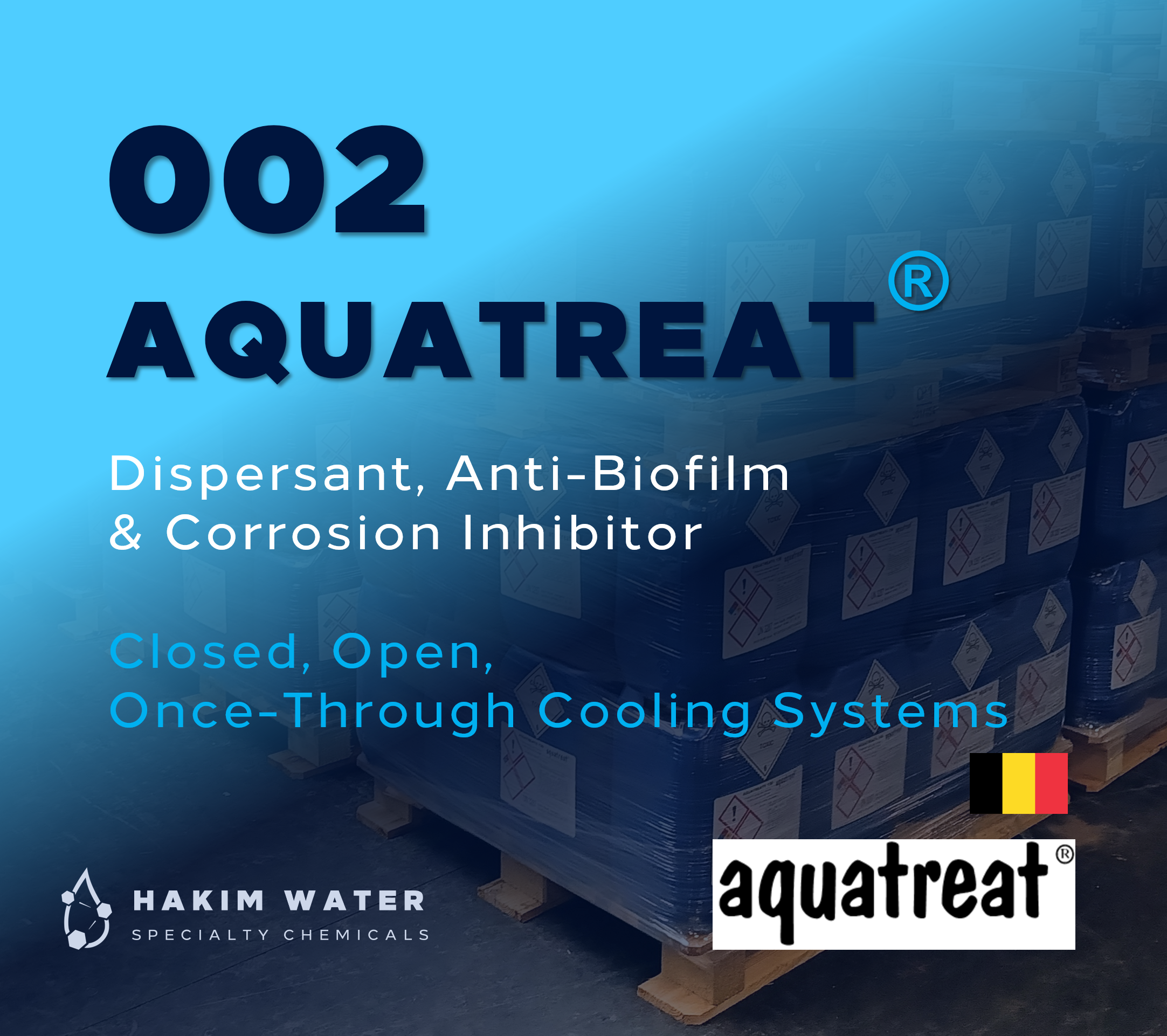 AQUATREAT 002 is a very efficient dispersant for hardness salts and metallic oxides. AQUATREAT 002 acts as corrosion inhibitor and prevents biofilm formation. AQUATREAT 002 has been developed to avoid and remove deposits composed of calcium carbonate, calcium sulphate, magnesium hydroxide, iron oxide, insoluble phosphates, silicates and organic deposits. AQUATREAT 002 contains sequestrants, anionic polymers, specific corrosion inhibitors, wetting agents and a fluorescent molecule. AQUATREAT 002 can be applied in closed, open and once-through cooling water systems, desalination plants, phosphoric acid plants and all other systems where above-mentioned deposits may occur. AQUATREAT 002 can be used for in-service cleanin. Hakim Water C&E is the Exclusive Distributor of Aquatreat co bvba Products from Belgium in the Sultanate of Oman and MENA Region.