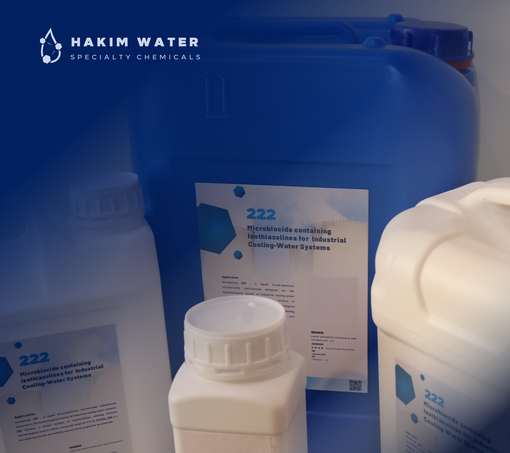 222 is a powerful non-oxidizing biocide designed for the bacteriological control of industrial cooling-water systems. It contains a potent mixture of isothiazolines, ensuring effective microbiological control across a wide pH range of 4 to 12. One of the key benefits of 222 is its non-corrosive nature, making it safe for various materials commonly used in industrial applications. Supported by Hakim Water Group, a leading provider of water treatment solutions in the Sultanate of Oman and the broader MENA region, 222 is backed by a team dedicated to delivering technical consultancy and support. We understand the unique challenges in managing industrial cooling-water systems and are committed to providing tailored solutions to meet your specific needs. For more information or to discuss your specific requirements, please contact our technical consultancy team. We are here to provide exceptional service and effective solutions for your water treatment challenges.